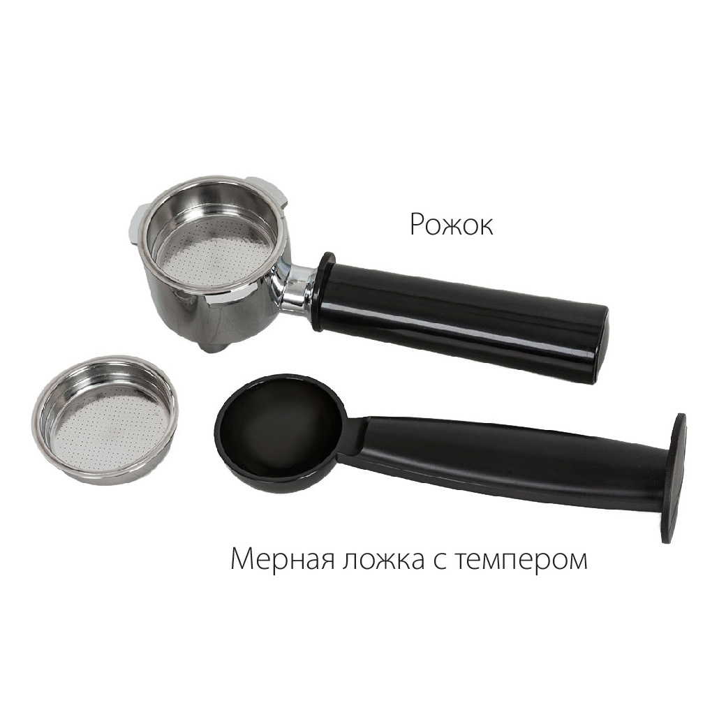 - Комплектация: кофеварка, фильтр для приготовления одной чашки кофе, фильтр для приготовления двух чашек кофе, чаша фильтра («рожок»), лоток для сбора капель со съемной решеткой, мерная ложка с темпером, гарантийный талон, инструкция на русском языке