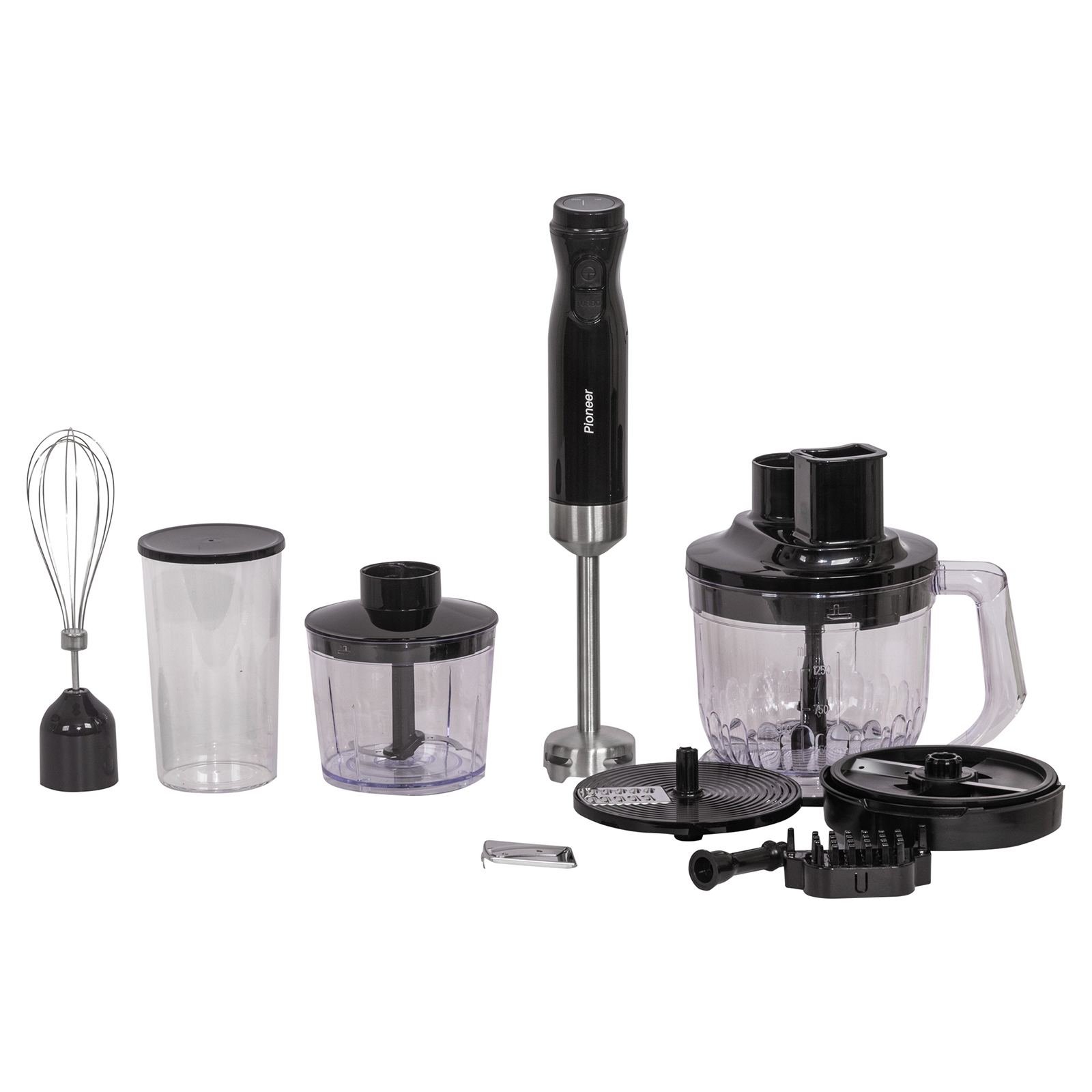 - Комплектация: блендер, измельчитель, мини-измельчитель, мерный стакан, насадка-венчик для взбивания, насадка для нарезки кубиками, насадка-терка, насадка для нарезки ломтиками, безопасная насадка толкатель для очистки, гарантийный талон, инструкция на русском языке