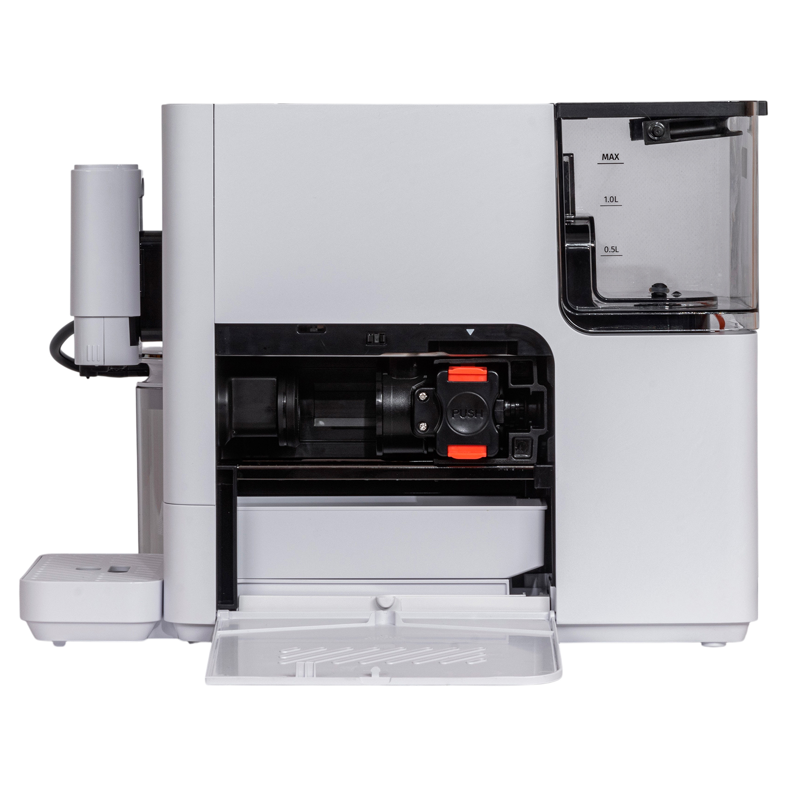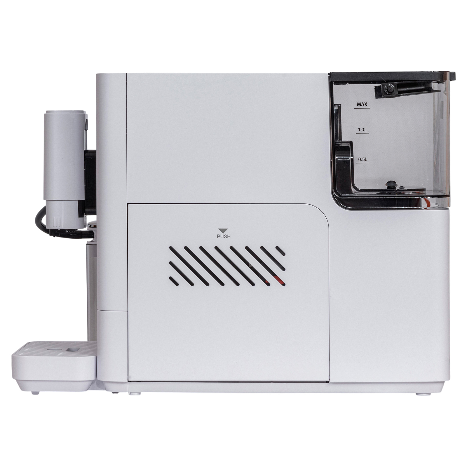 - Комплектация: кофемашина в сборе, шнур питания, резервуар для молока с крышкой и трубками, чистящая щеточка, руководство по эксплуатации, гарантийный талон