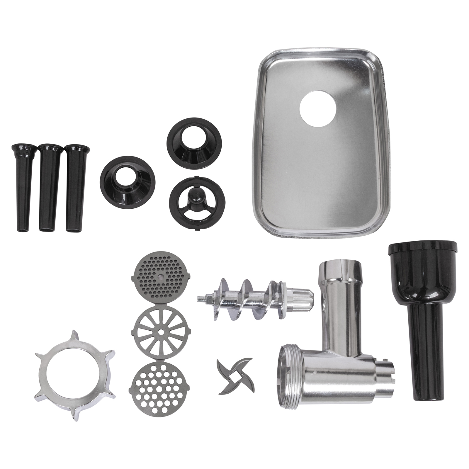 - Комплектация: мясорубка, 3 решетки: 4 мм, 7 мм, подрезная, насадки для формирования колбасок разного размера 14\20\22 мм и кеббе, гарантийный талон, инструкция на русском языке