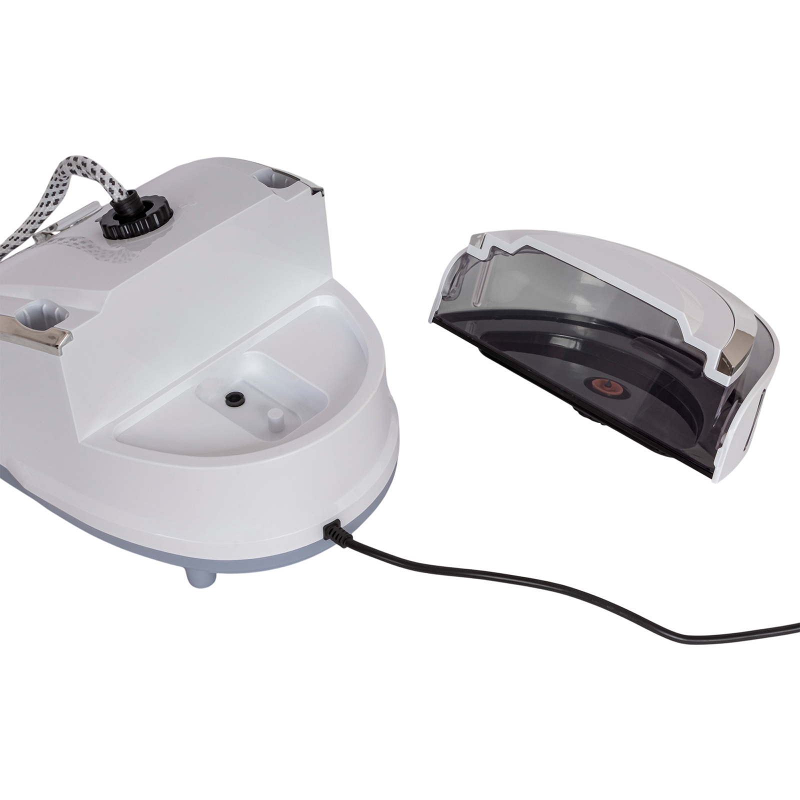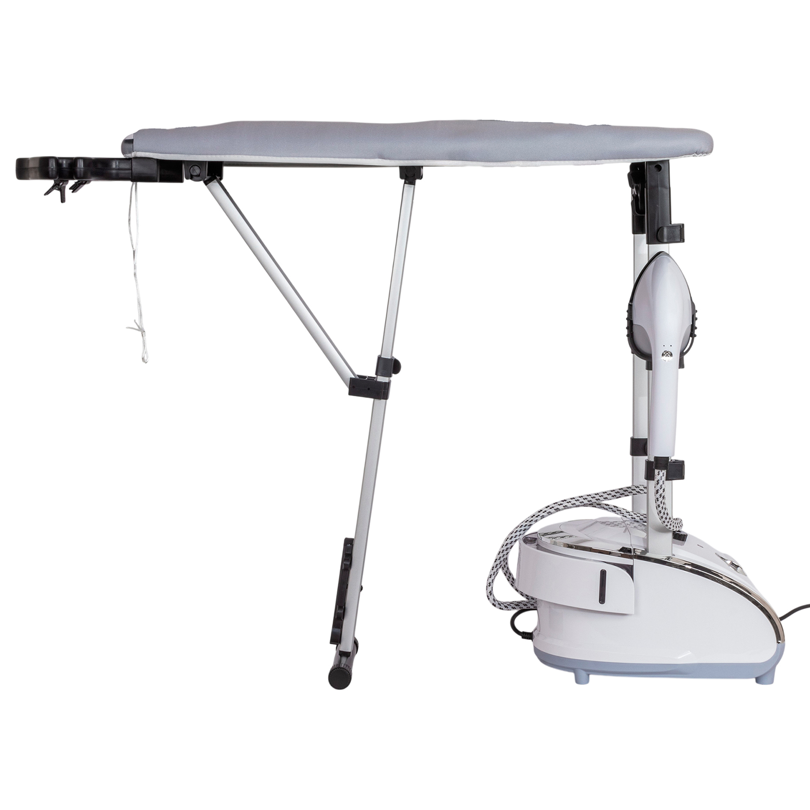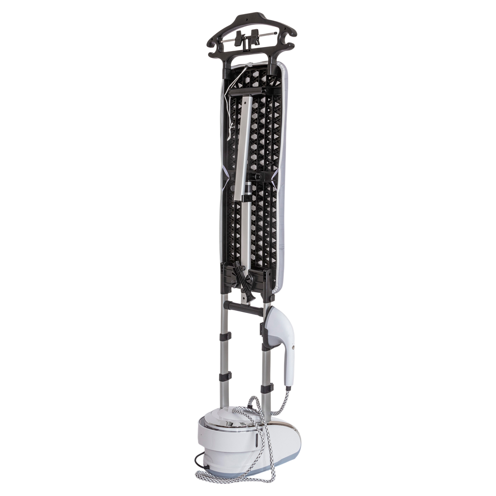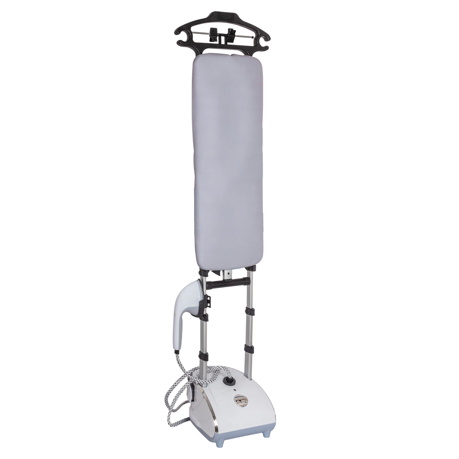 - Комплектация: отпариватель, регулируемые телескопические трубки, доска для глажения удлиненная 79x28 см., гибкий шланг в защитной оболочке, паровой утюжок, насадка-щетка для отпаривания, плечики для одежды с прищепками для брюк и юбок, перчатка, гарантийный талон, инструкция на русском языке