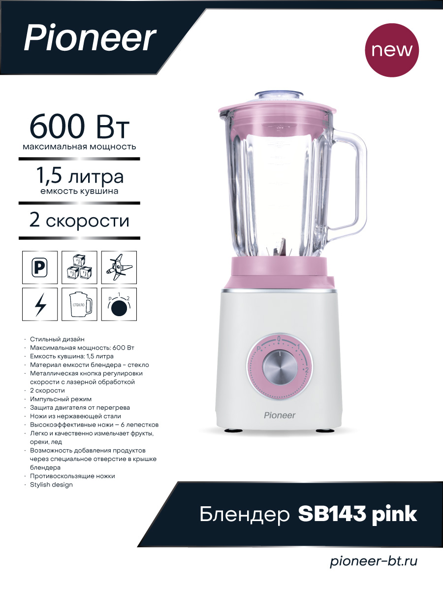 Стационарный блендер Pioneer SB143 pink