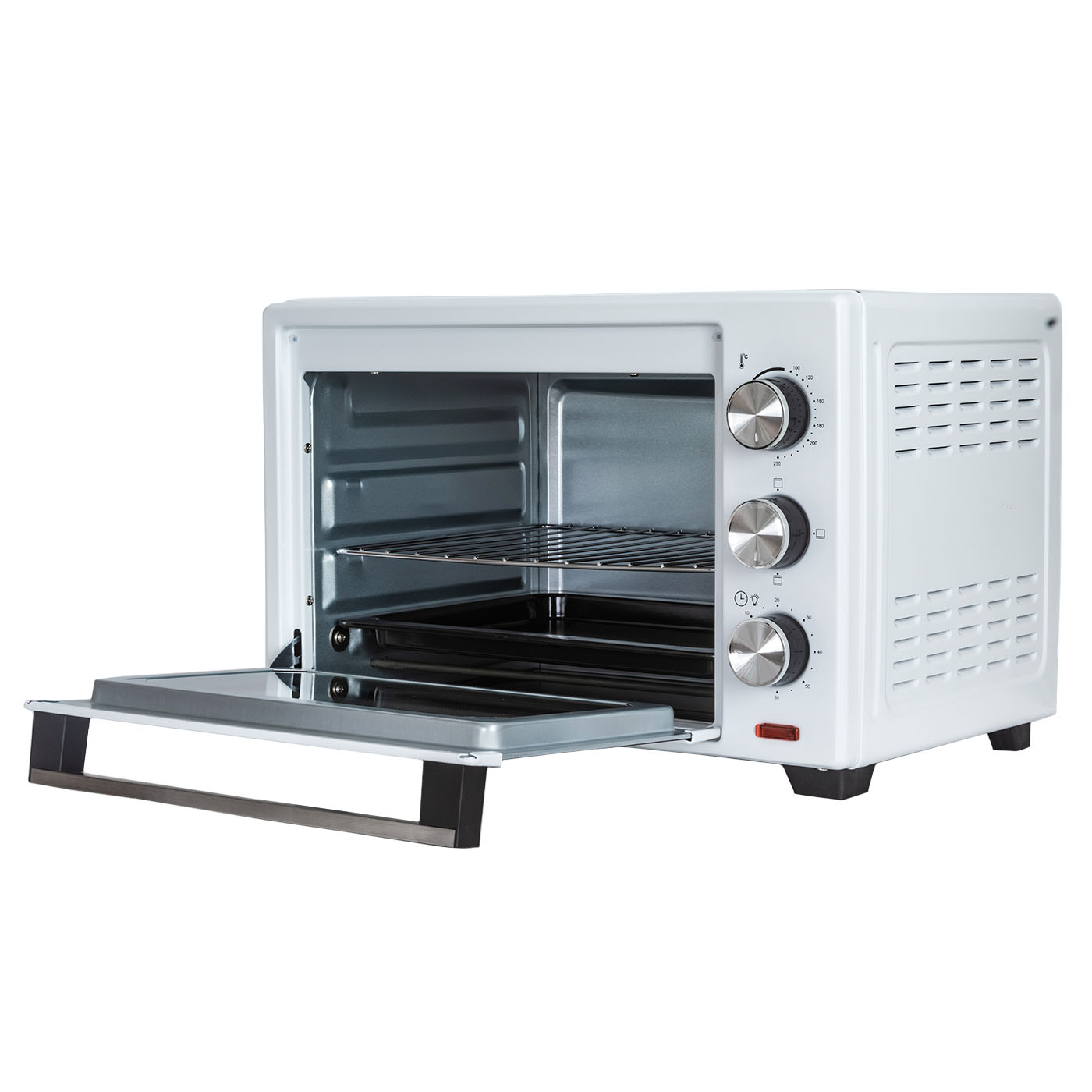 - Комплектация: электропечь, металлическая решетка, плоский противень, ухват для противня, гарантийный талон, инструкция на русском языке