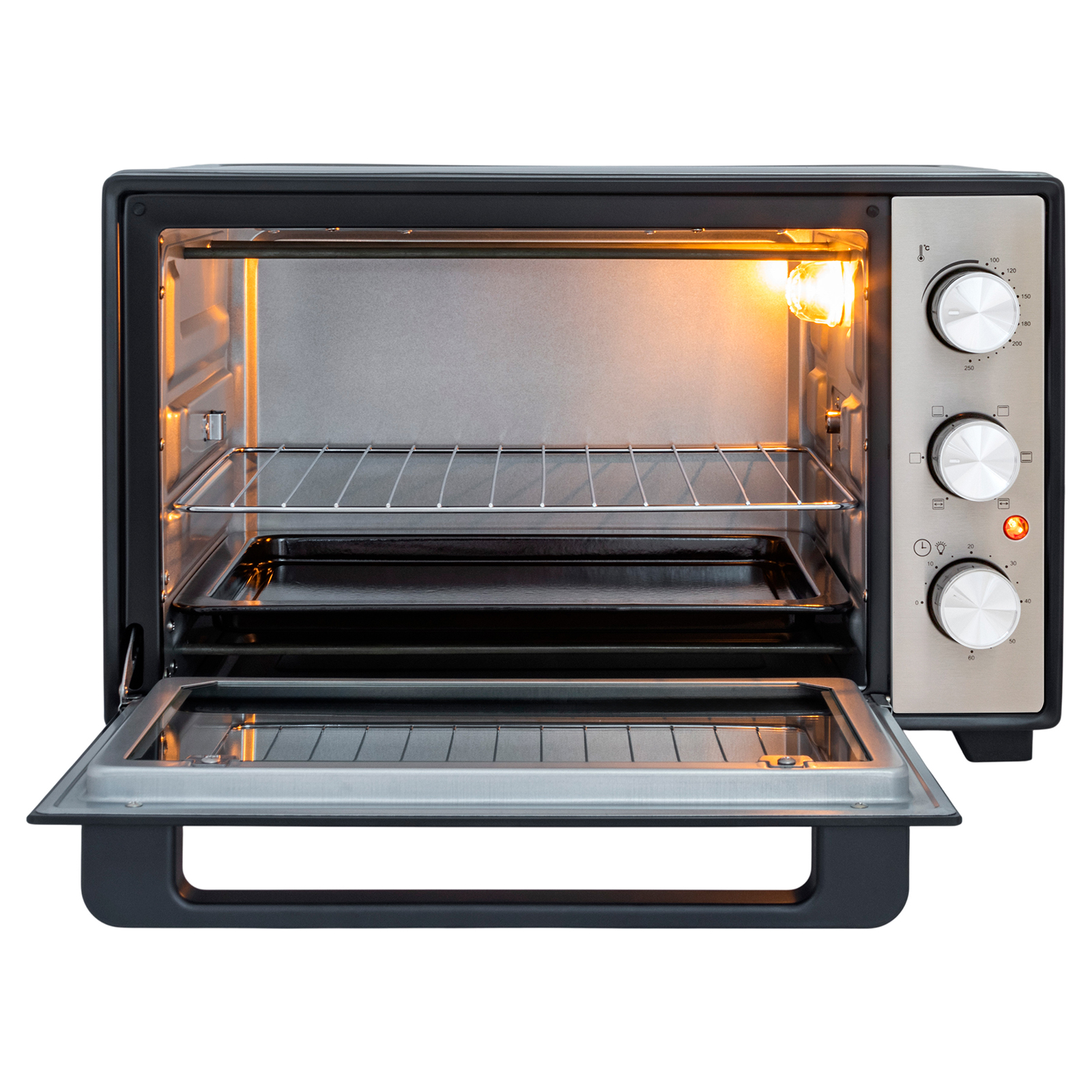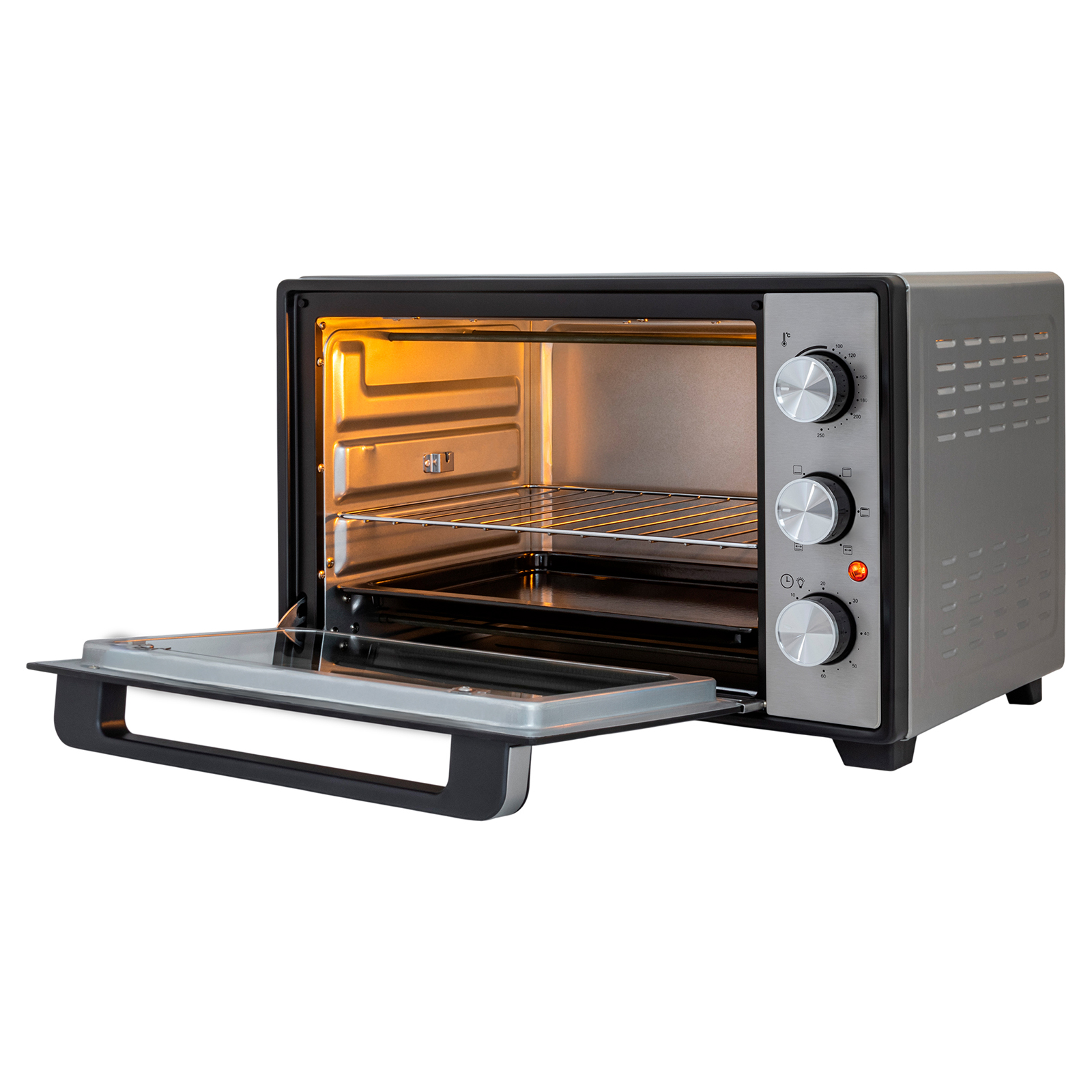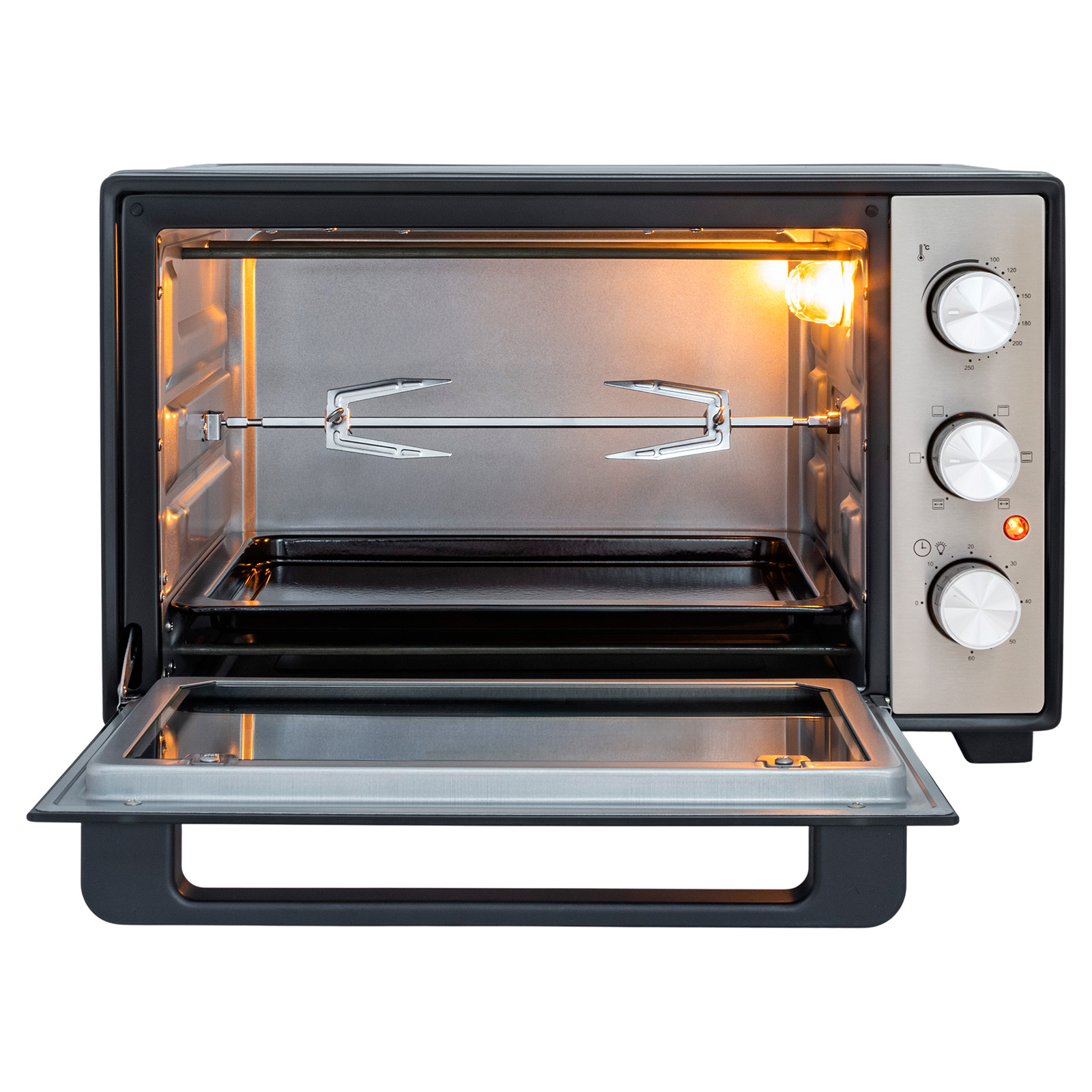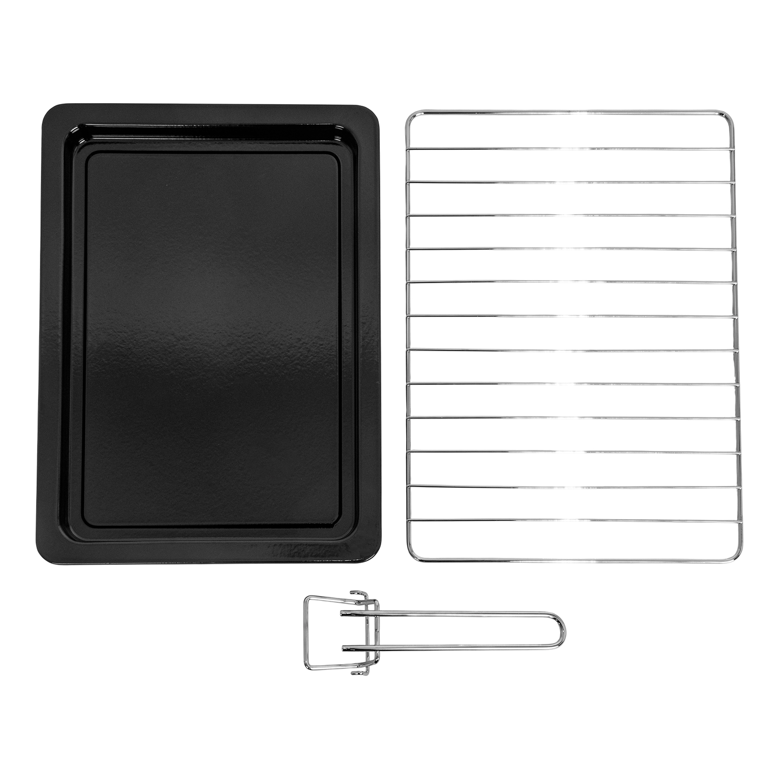 - Комплектация: электропечь, металлическая решетка, плоский противень, вертел, держатель для вертела, ухват, гарантийный талон, инструкция на русском языке