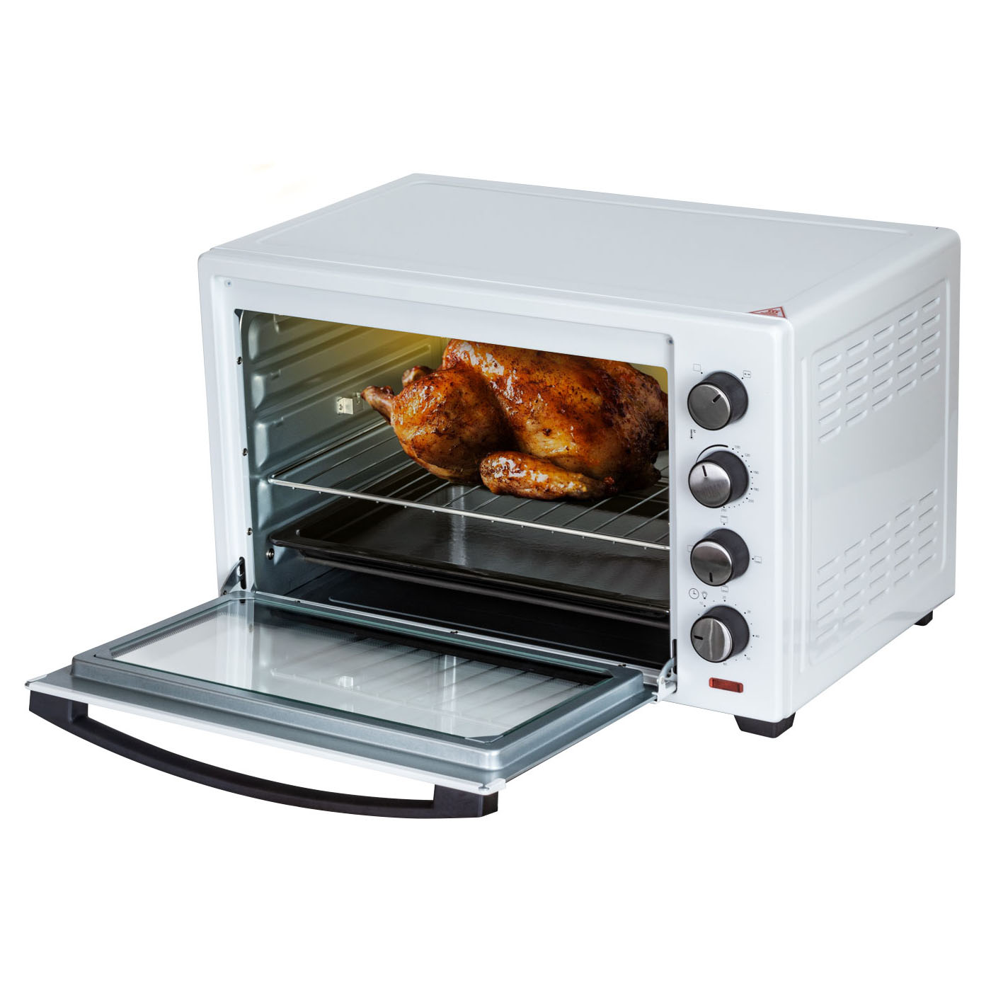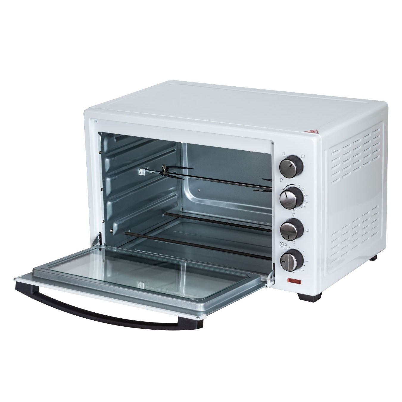 - Комплектация: электропечь, металлическая решетка, плоский противень, вертел, держатель для вертела, ухват, гарантийный талон, инструкция на русском языке
