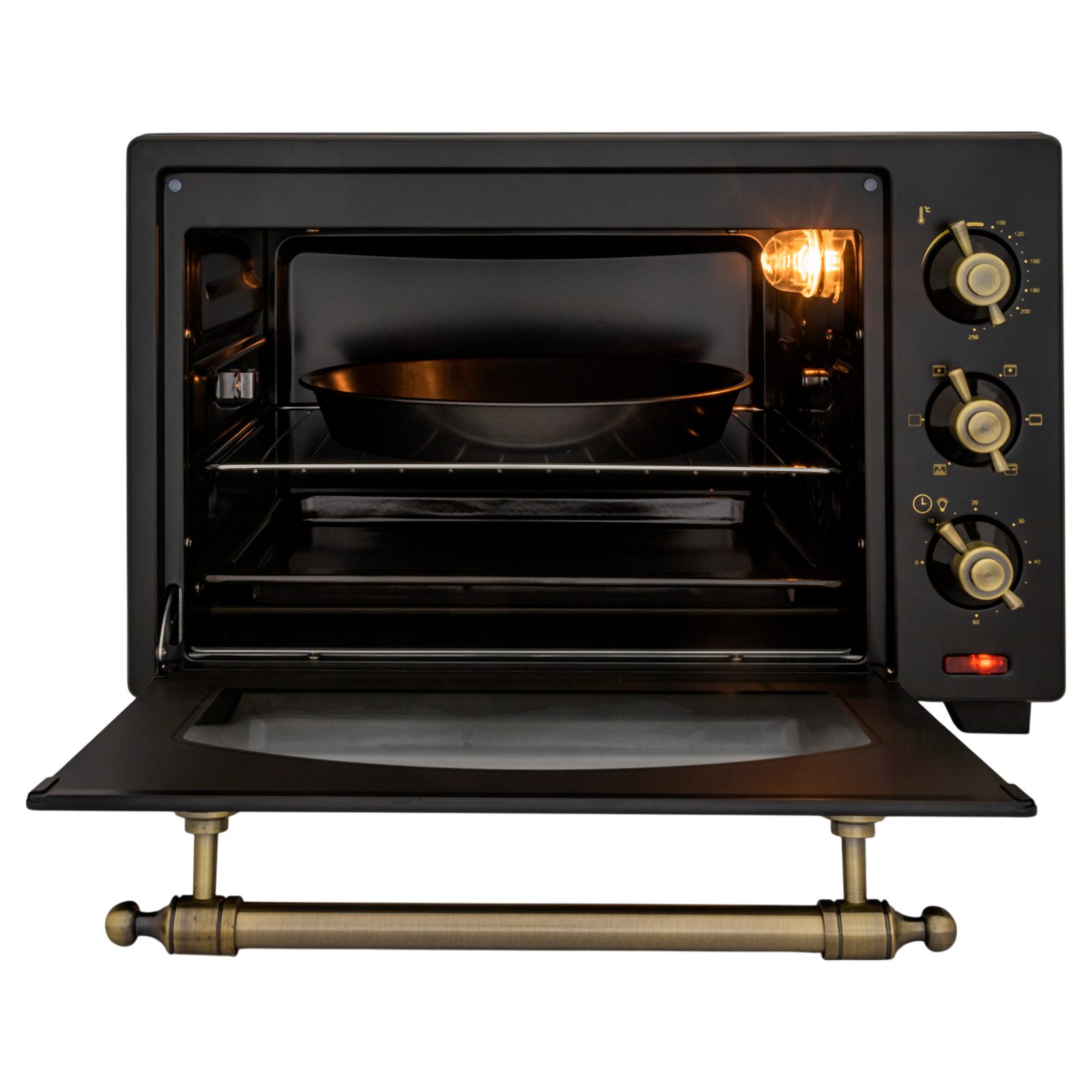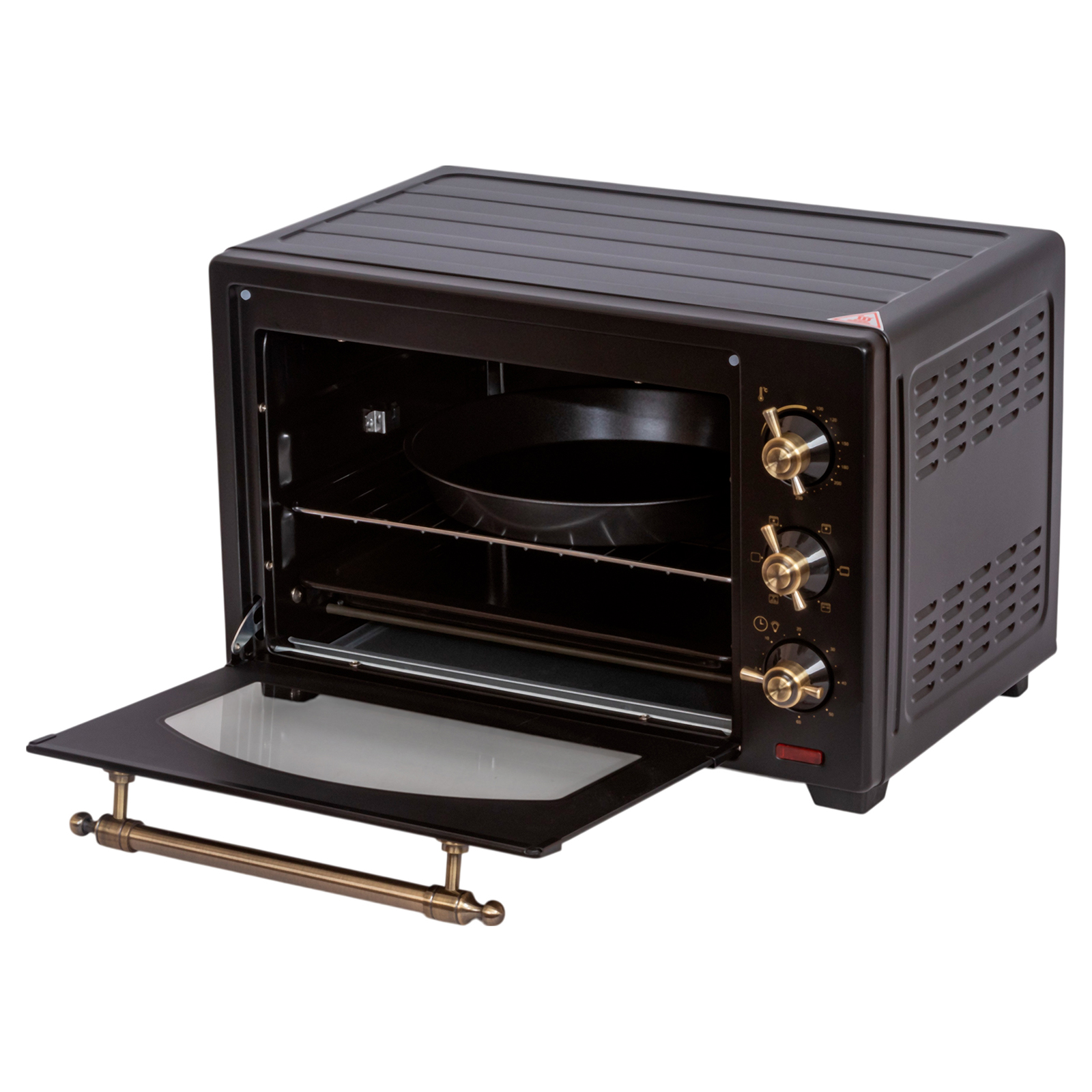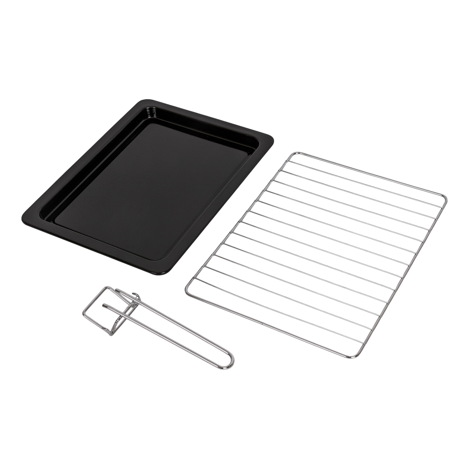 - Комплектация: электропечь, решетка, поддон для запекания, ухват для поддона, вертел, держатель для вертела, поддон для крошек, форма для пиццы, гарантийный талон, инструкция на русском языке