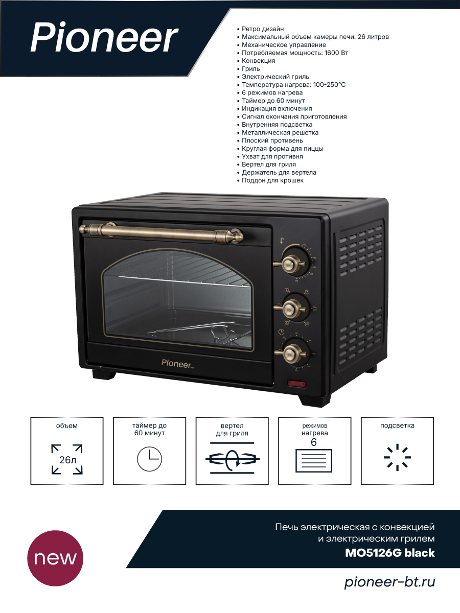 Электропечь Pioneer MO5126G black