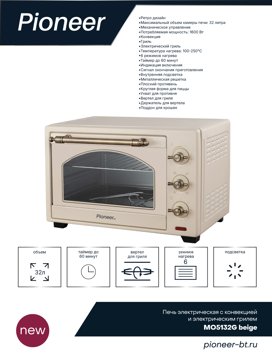 Электропечь Pioneer MO5132G beige