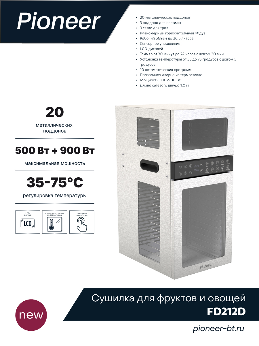 - Комплектация: сушилка, 20 металлических поддонов, 3 поддона для пастилы, 3 сетки для трав, гарантийный талон, инструкция на русском языке