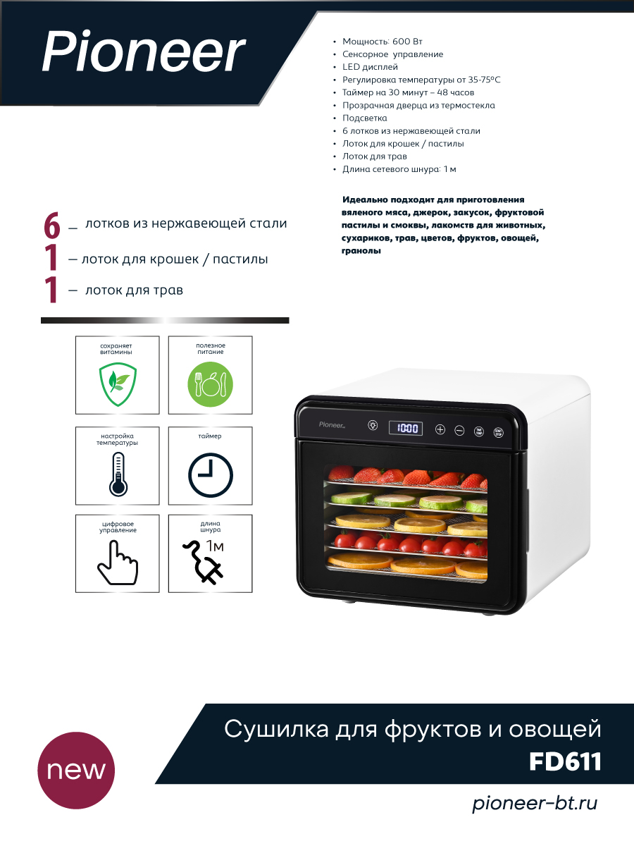Сушилка для овощей и фруктов Pioneer FD611
